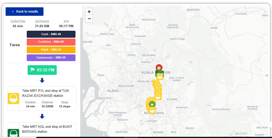 Embark on an adventure with the KLIA Transit to Putrajaya/Cyberjaya and transfer to the MRT towards Bukit Bintang for an unbeatable train ride experience. This budget-friendly option offers an affordable travel cost of just RM13, making it ideal for the budget-conscious traveler.